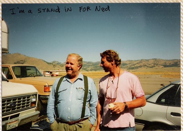 Beail, standing in for Rushton, was able to wear a mullet wig, but Moore, standing in for Beatty, had his real hair styled for filming. He wrote, “The hairdresser shaved the top of my head and then put my hair up in curlers,” which had to stay in for 24 hours. “The only trouble was that I had a Forest Service recon flight in the meantime and riding along was Mary Colombe, the <forest> supervisor. She was quite amused when I offered my explanation.”